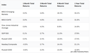 Markets were relatively flat in November despite heightened volatility as the S&P 500 posted a gain of 0.3%. Emerging markets took the biggest hit, ending the month down 2.4%, followed by the Nasdaq, which declined 1.5%.