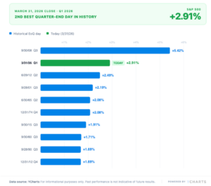 The energy sector was a beneficiary as well, up 9.6%, and the only sector not to retreat in March. While equity markets trended downward for most of the month, the final trading day brought some reprieve. On rumors that Iran and the United States had made progress towards a deal, the S&P posted its second-best end-of-quarter day in history.