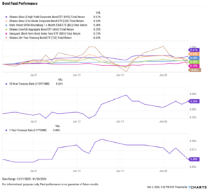 This unique set of circumstances has led to more pronounced moves as seen in January, reinforcing that volatility is not limited to equities alone. YCharts helps advisors clearly explain these dynamics to clients, emphasizing the importance of diversification and the role each asset class plays in a well-constructed portfolio.